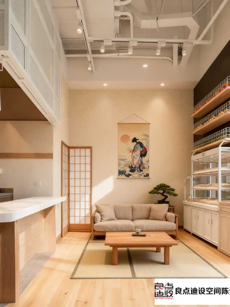 背景墙才是隐藏***!上层用木质围栏+玻璃的组合,巧妙隔出层次,既保了私密性,又让光线自由穿梭。天花板粗犷的管道和灯具,工业风那味有了,但整体一点都不违和,反而和白墙、木元素撞出高级感。墙上挂的几幅简约线条画,看似随意,实则把艺术气息拿捏得死死的,让空间瞬间活起来。