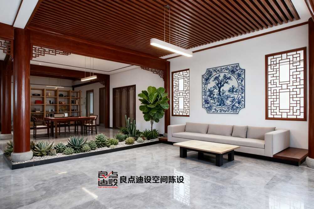 新中式茶馆 #商业空间设计 #茶馆软装 #博古架陈列 #良点设计
