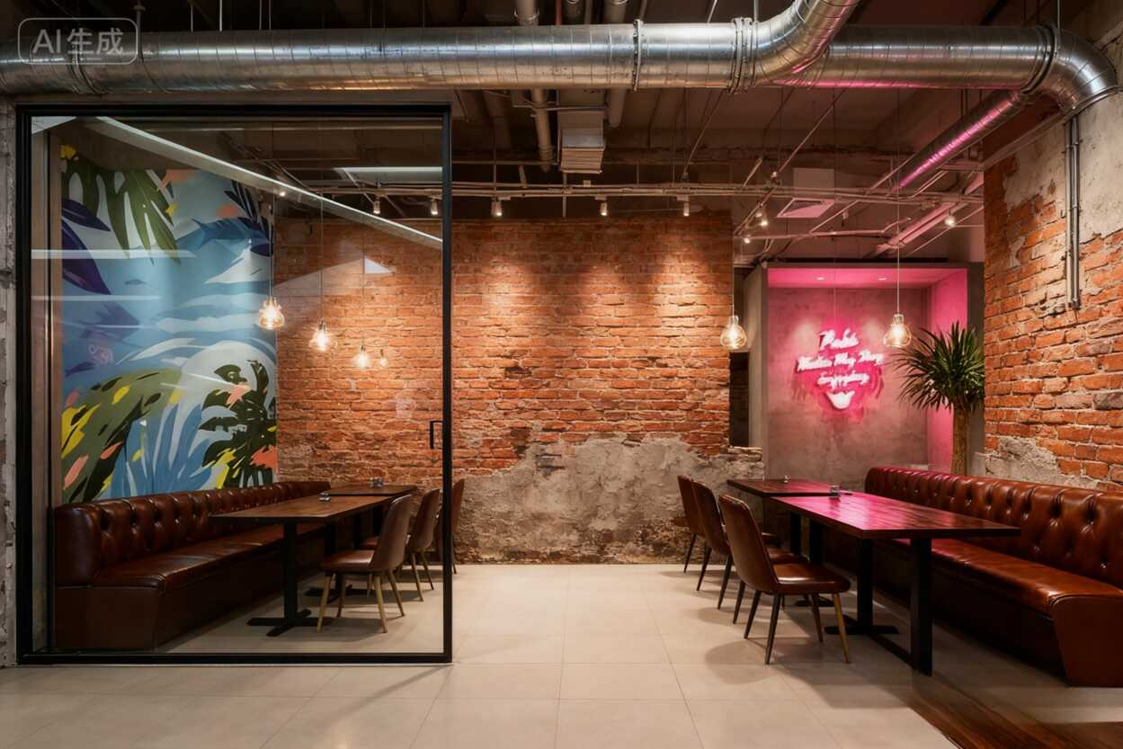 (拍照记得利用好霓虹灯的光影效果!转发时带上#工业风餐厅 #高级感装修 标签,@你的拍照搭子一起来打卡吧!)