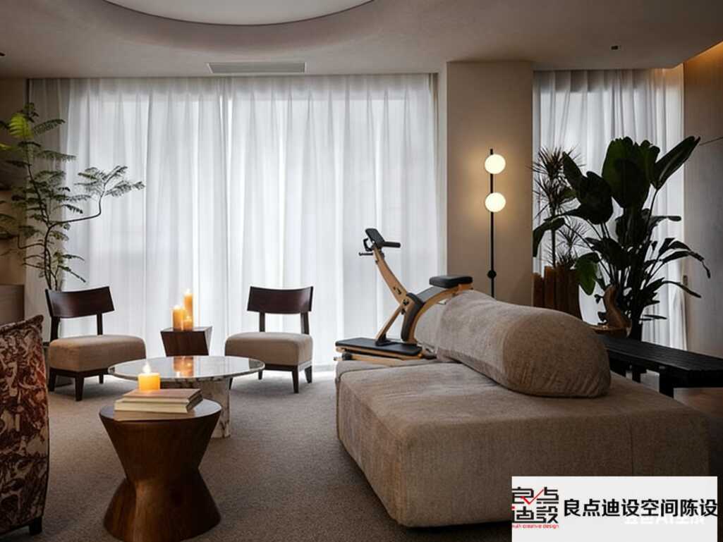 暖棕沙发+纱帘=神仙搭配!这间普拉提休息区软装设计让人想窝一整天???