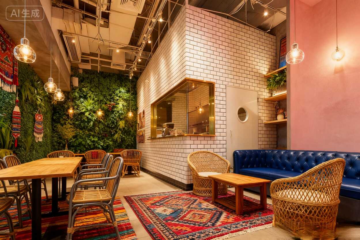 拿捏死了!这家餐厅软装设计的波西米亚混搭风,水泥墙+绿植居然这么绝!