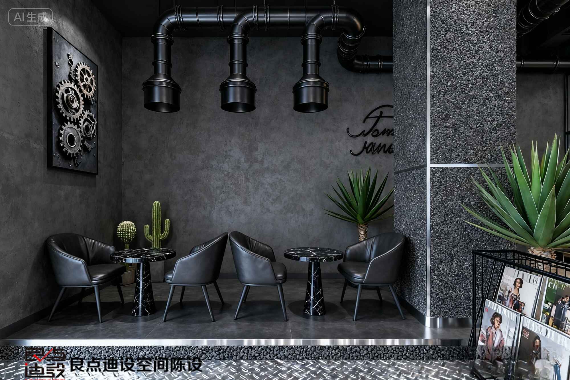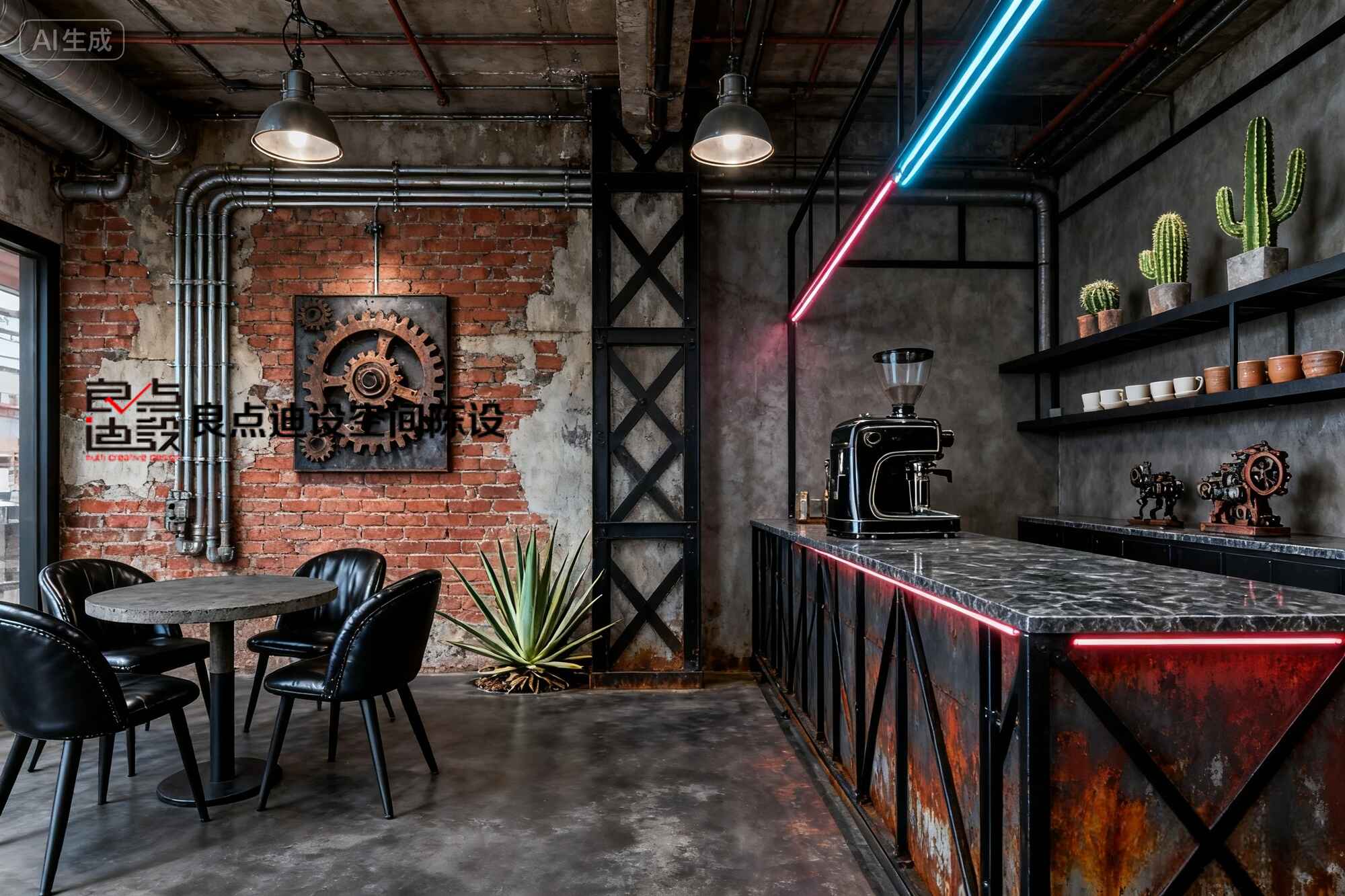 ??酷到没朋友!良点迪设工业风咖啡店软装设计细节大揭秘