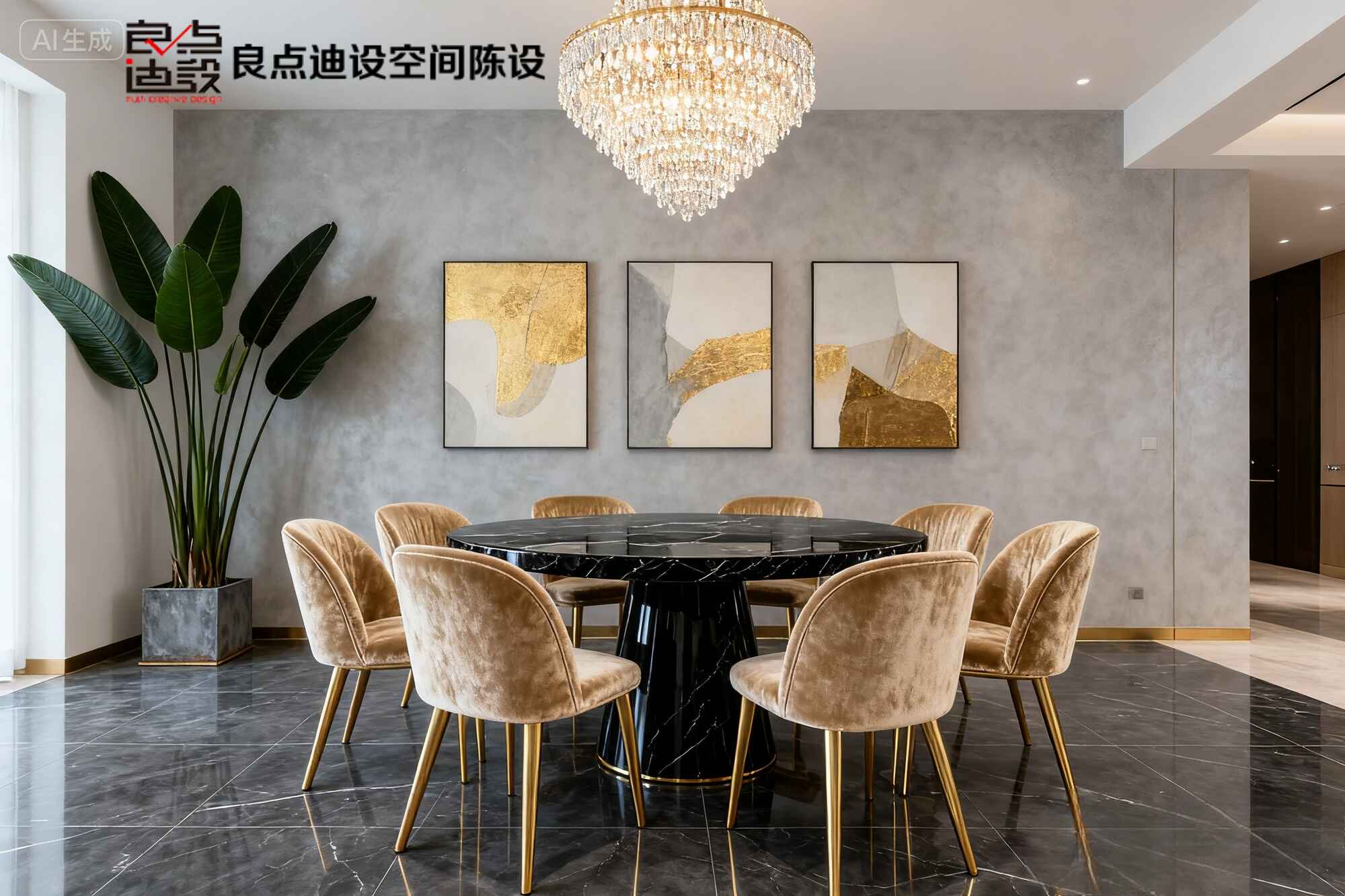 ?? 黑金配色绝绝子!这套轻奢风餐厅装修软装设计,我直接码住复制!