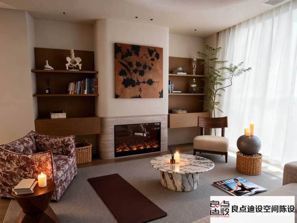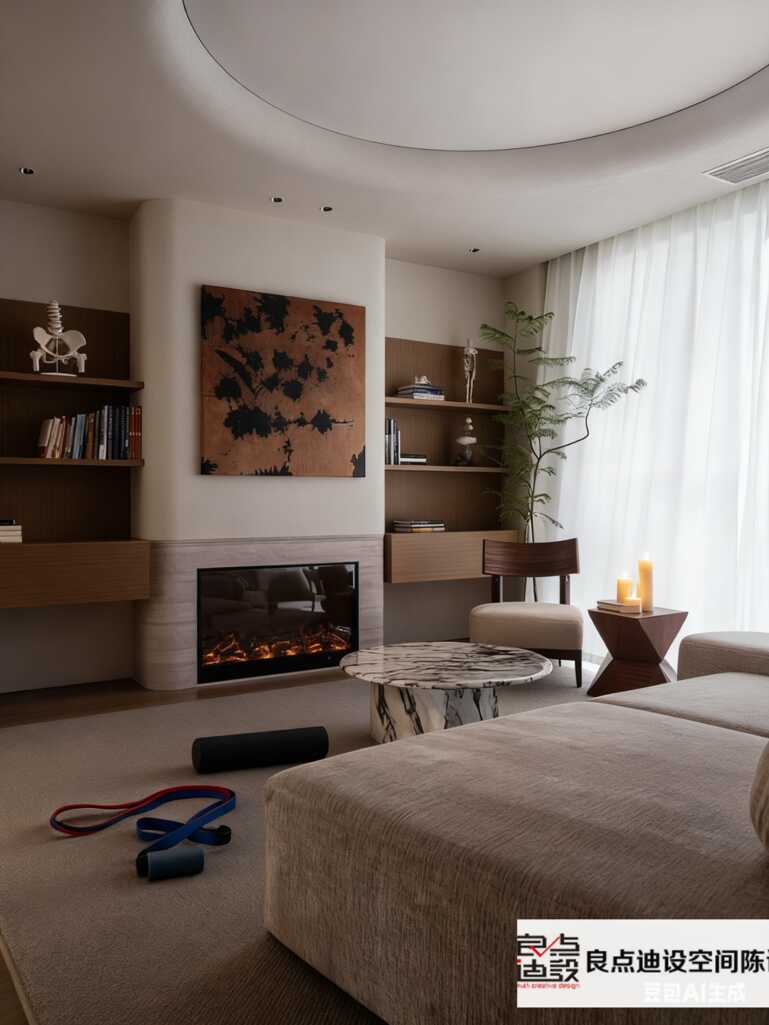 壁炉+瑜伽垫=治愈满分!这个普拉提风客厅美到想24小时宅家??