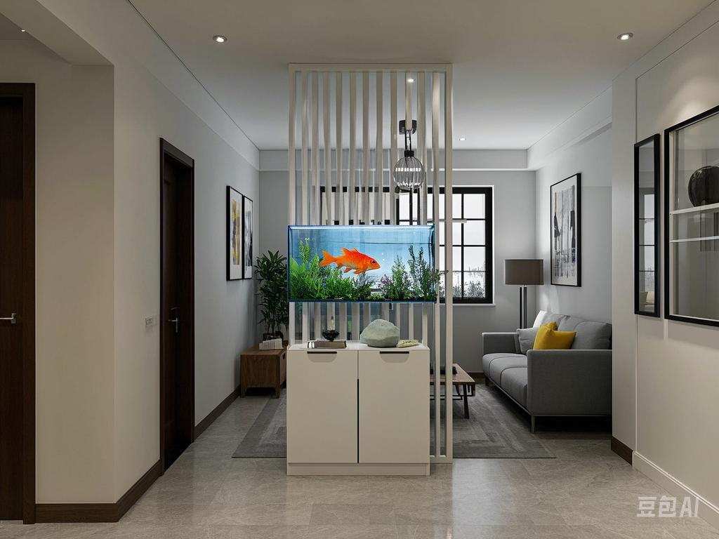 装饰画和花卉可以让进门玄关更加美观。你可以选择一些简单的装饰画或者在墙上挂上一些植物,这样可以让进门玄关更加生气勃勃。