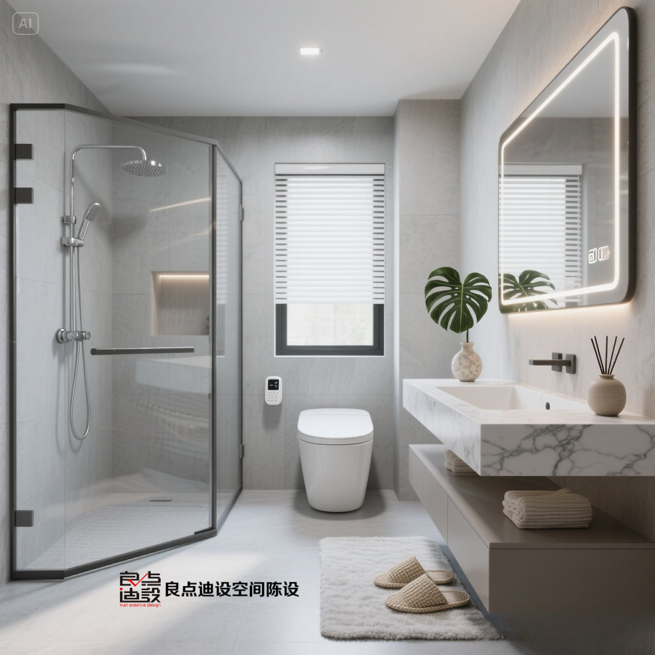 绝了!灰调卫生间软装天花板,随手一拍都是大片,圈粉无数~
