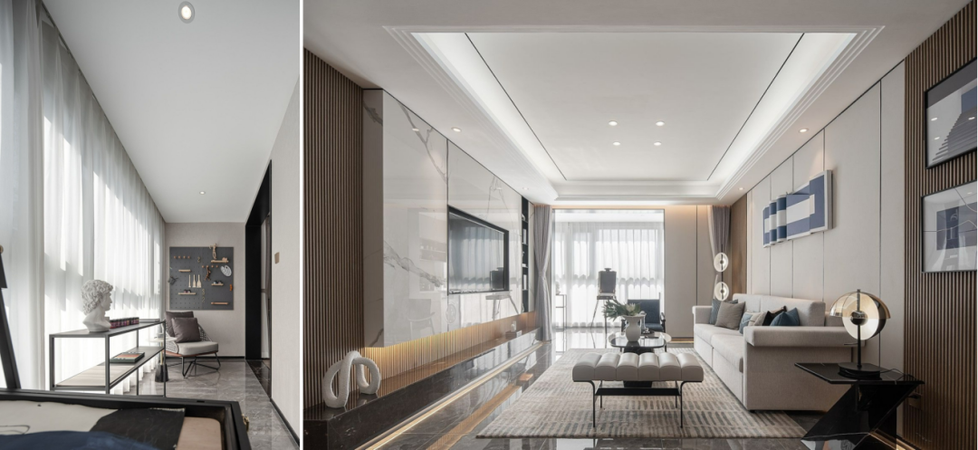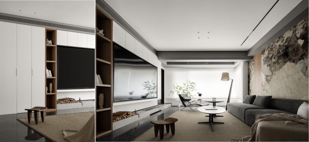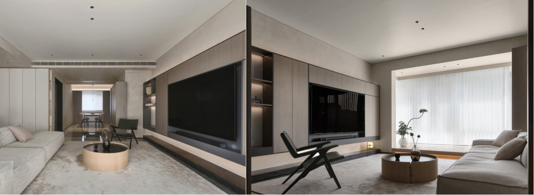 设计思路:客厅整体打通,视觉上空间增大,增加活动范围,更好的培养亲子感情,北面一个房间改成衣帽间,增加储物空间。