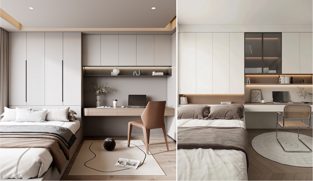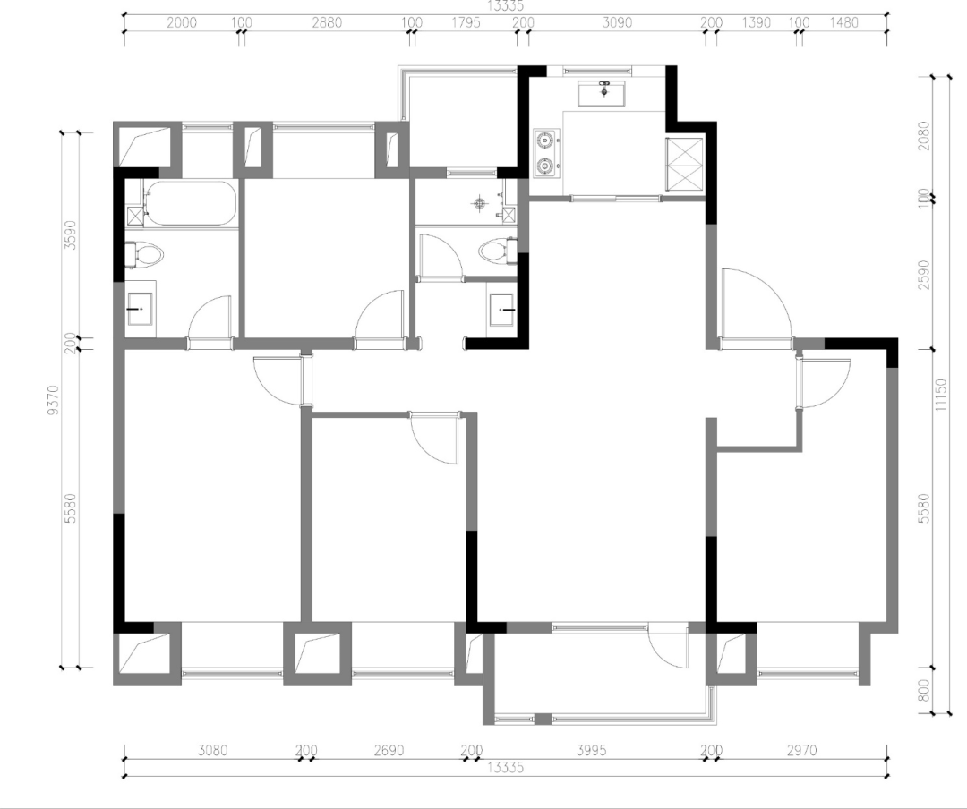 设计思路:基本不更改硬装结构,在保留四个房间的前提下,增加各个空间的收纳空间。北房间用来做多功能房间,以收纳和办公学习为主,保留居住的功能。