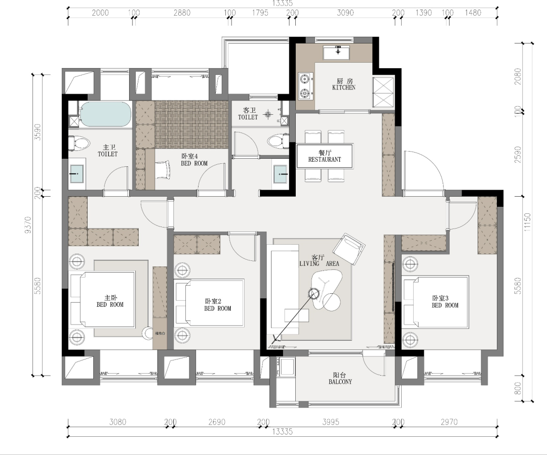 1、标配4房2卫,满足更多功能需求,可预留空间足够;