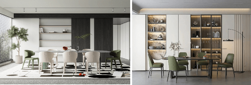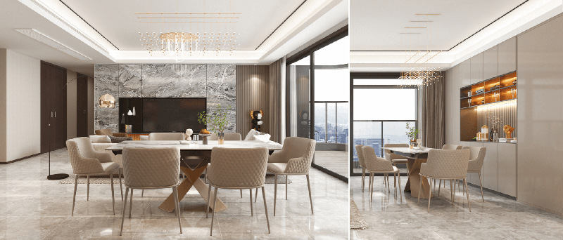 餐厅要以简洁为主,无需过多的装饰,简单的灯具就是***好的装饰品,餐边柜的用处除了储物功能与装饰功能之外,还具备展示物品的作用,业主可以把收藏的酒、餐盘杯子或工艺作品放在餐边柜的橱窗中展示出来,烘托餐厅的氛围,既实用有充满了格调。