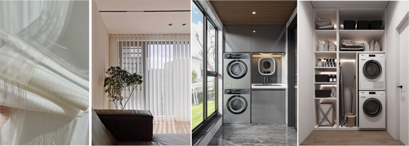 将洗衣间放在阳台上,缓解卫生间的空间,也更加方便衣服的晾晒,在阳台上定制一组柜子,把杂物都放在里面,阳台采光充足,可以在阳台上打造一组休闲桌椅,喝喝茶,聊聊天,欣赏窗外的风景,阳台的阳光也是培养花草的培育室,可以种些花花草草,改善一下阳台环境和空气。