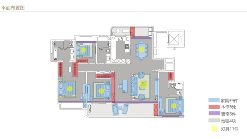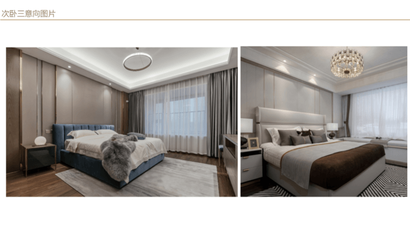 主卧做套房设计,作为业主的私人活动空间,起居打扮在这里都能完成。另外三间卧室作为儿童房、长辈房和客房,房间以简约为主,按照房间定性进行规划。