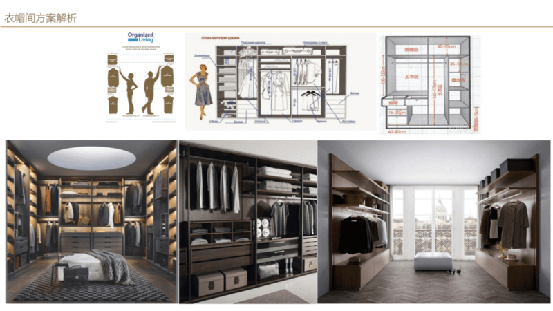 除此之外,开放式衣帽间较为省地儿,而且由于衣柜没有柜门,可以一目了然,拿取衣物比较方便,但是没有柜门衣服很容易就会落灰,所以可以选用玻璃的推拉门或者平开门。