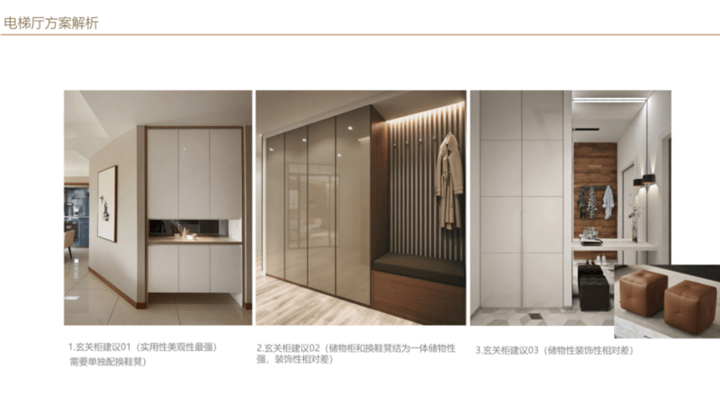 换鞋凳 需要注意选择的家具颜色风格应当与整体环境保持一致,换鞋凳下方可以设计为物品收纳的空间,主要收纳拖鞋、鞋刷或其他换鞋时需要的物品,因为这些是日常频繁使用到的物品,宜采用明格存放;也可以以卡座的形式设计,高度根据身高和用物习惯去选择。