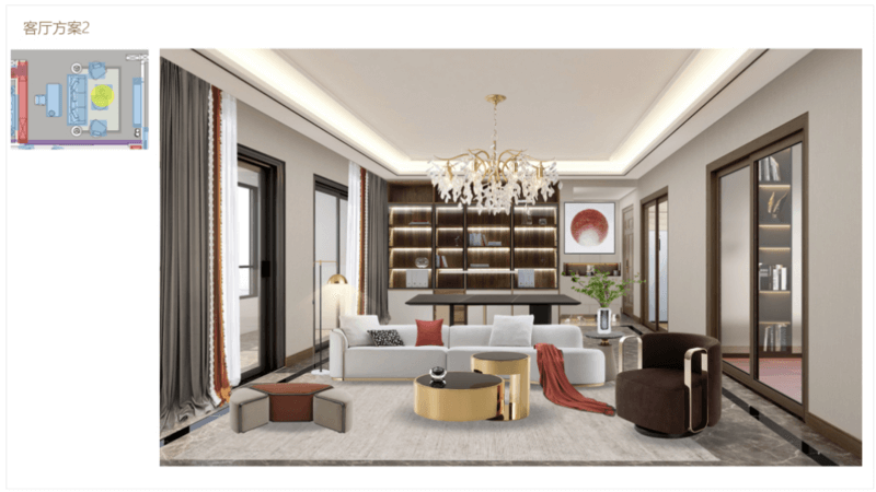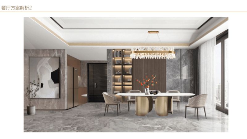 门厅入户增加玄关储物柜,解决换鞋、储物、挂衣的问题??吞黾庸δ苄缘难≡?,以沙发为隔断,增加开放式书房,选择整墙的收纳架,再配上一张自带高级感的书桌,轻松营造出有品位的学习工作环境。也可以当作茶室来使用,随时改变空间性质。