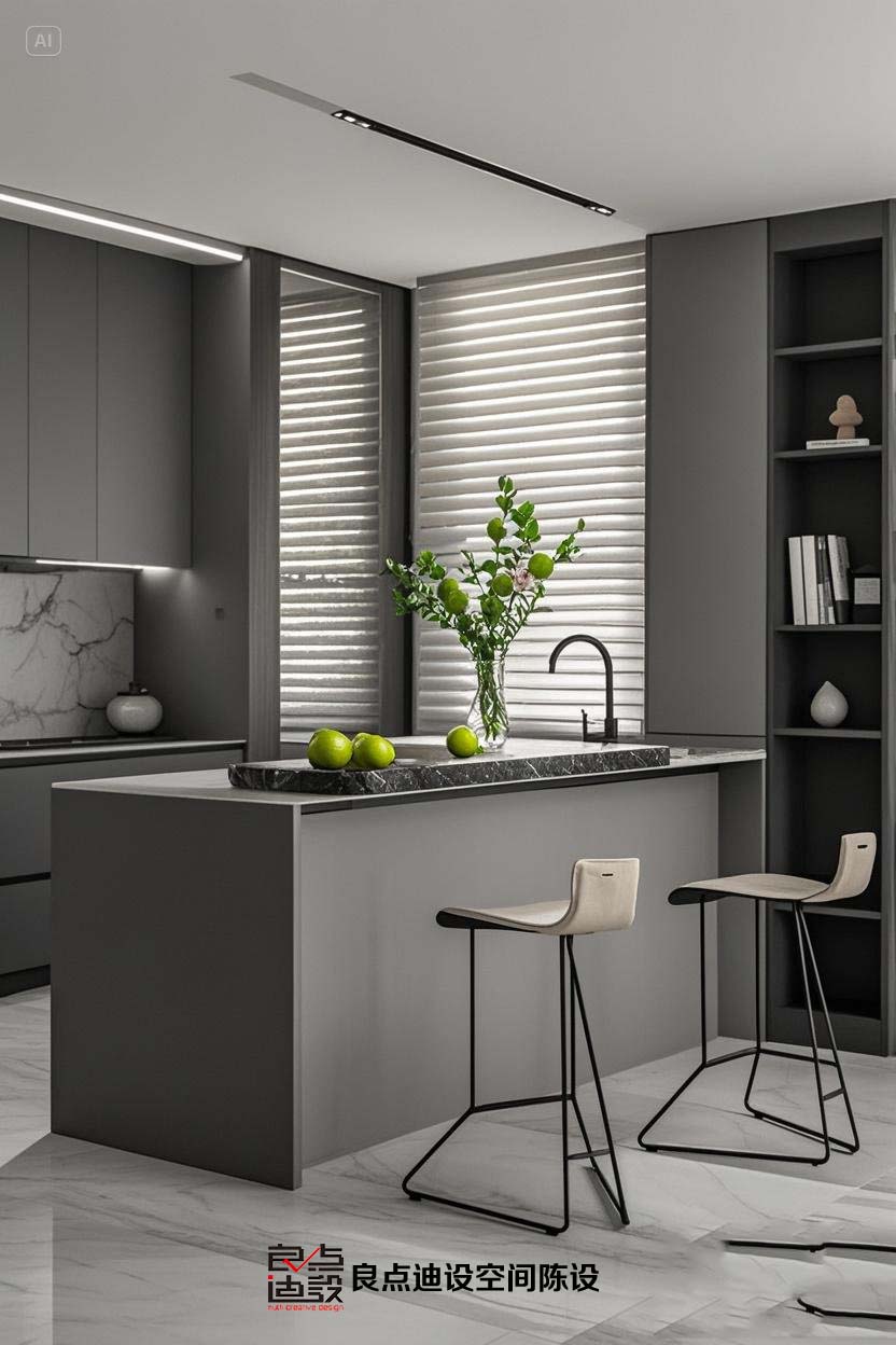 深灰岛台+百叶窗=我的理想厨房DNA!这设计也太会撩了!