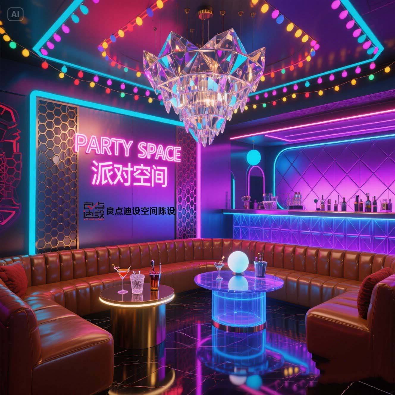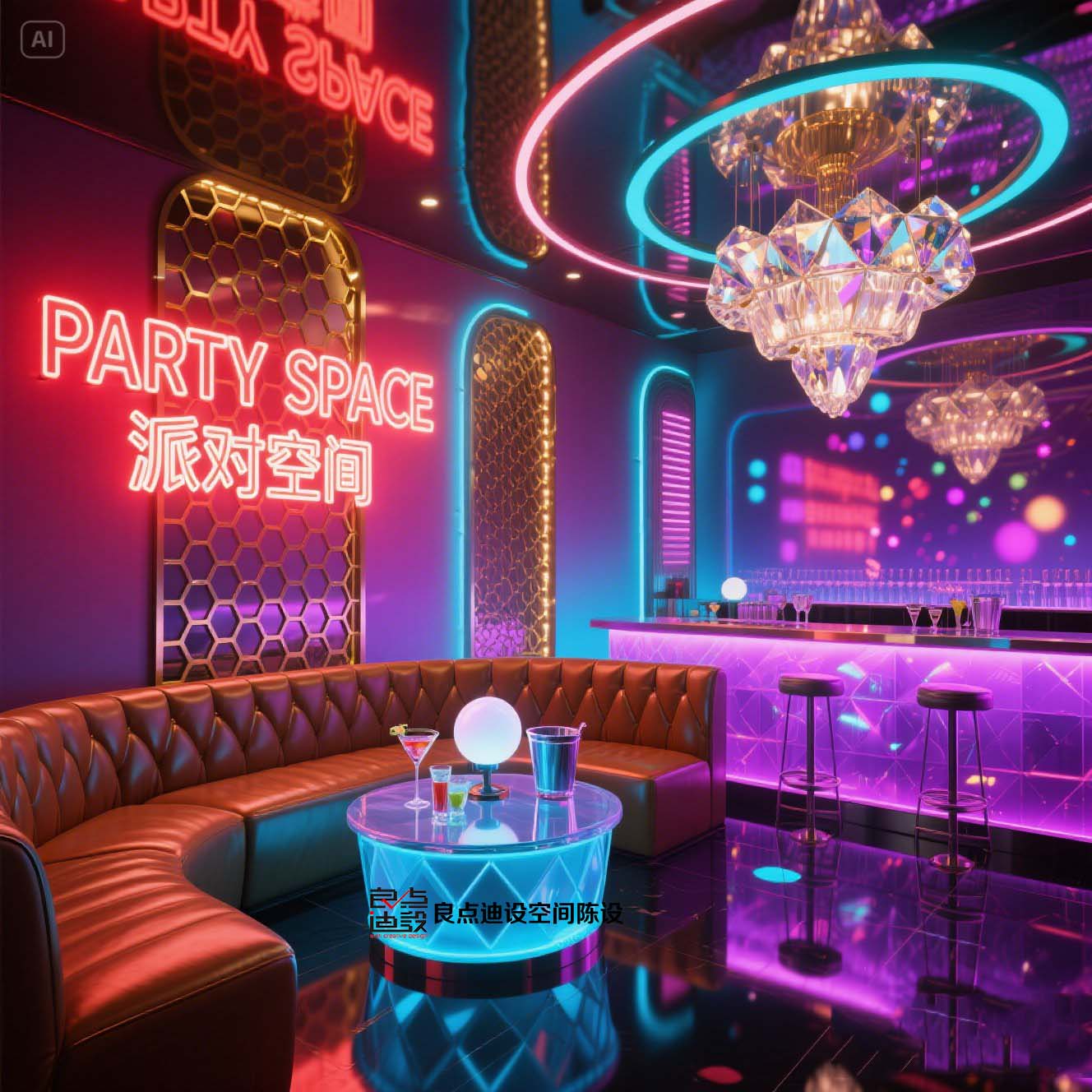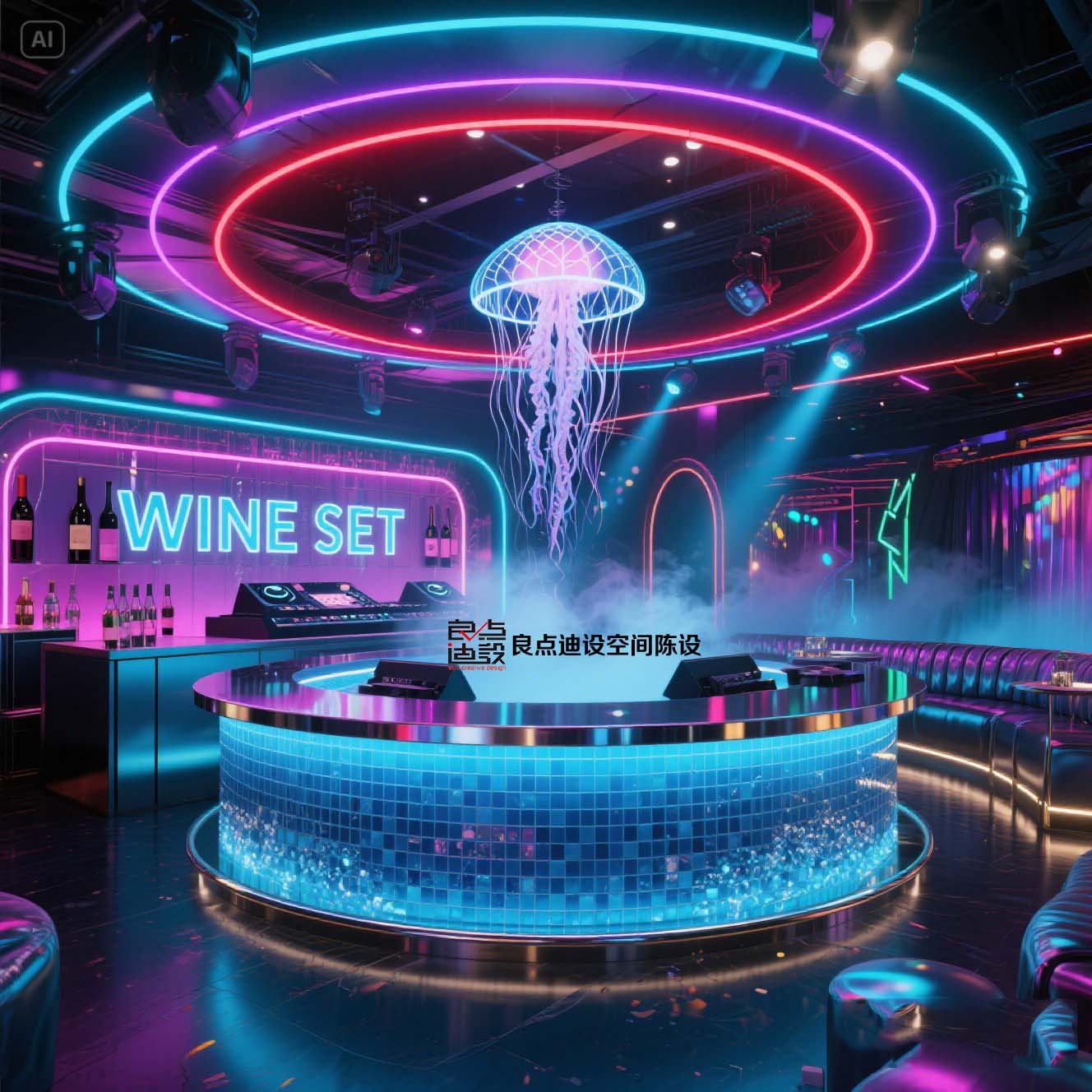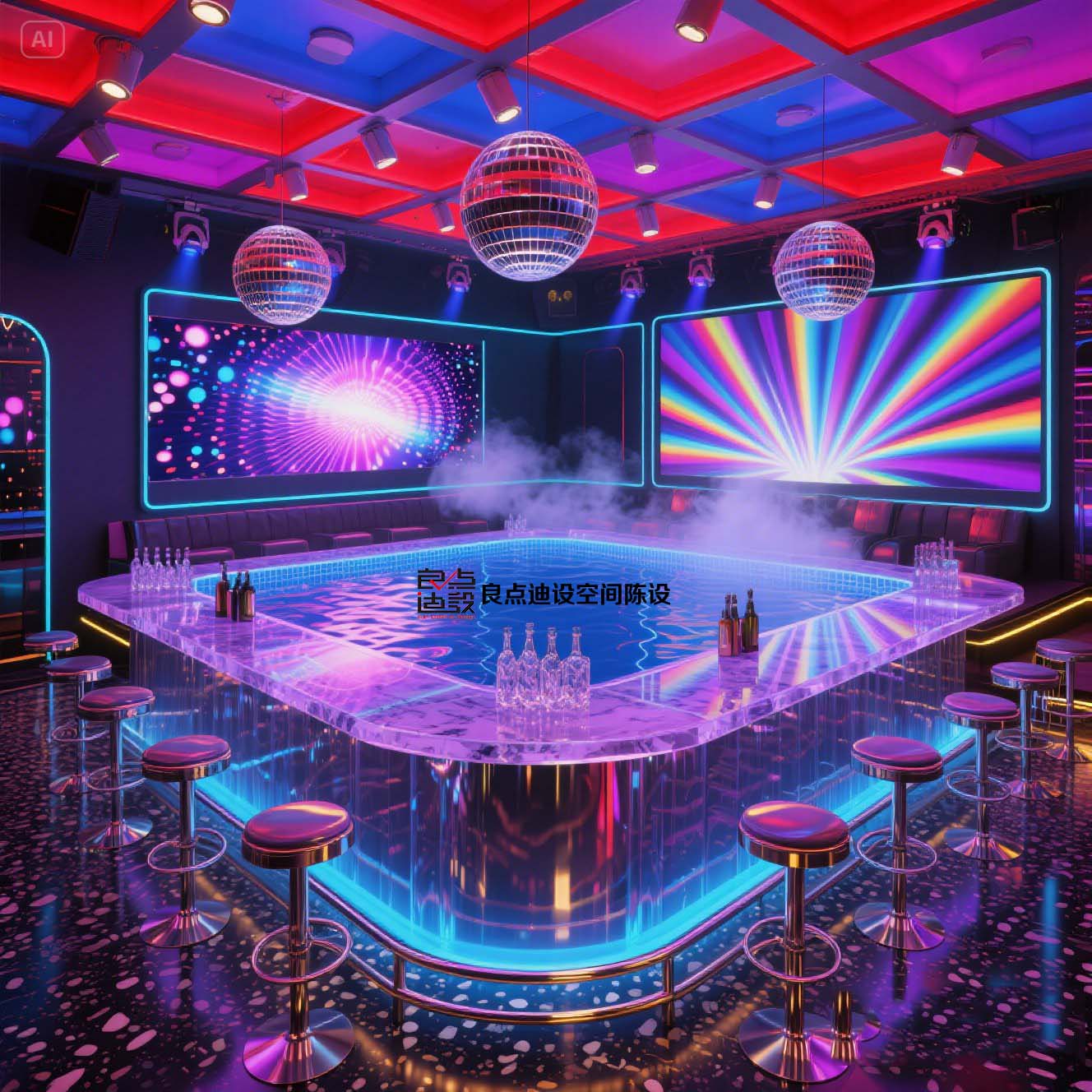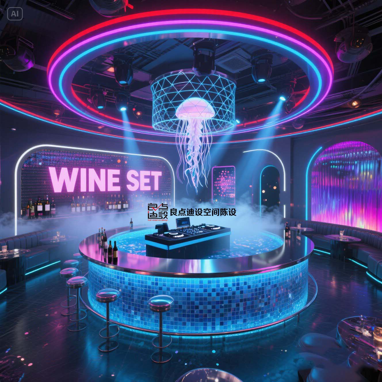 夜店酒吧装修软装设计!蓝色海洋遇上赛博霓虹