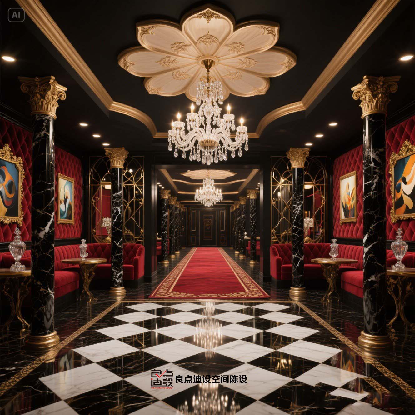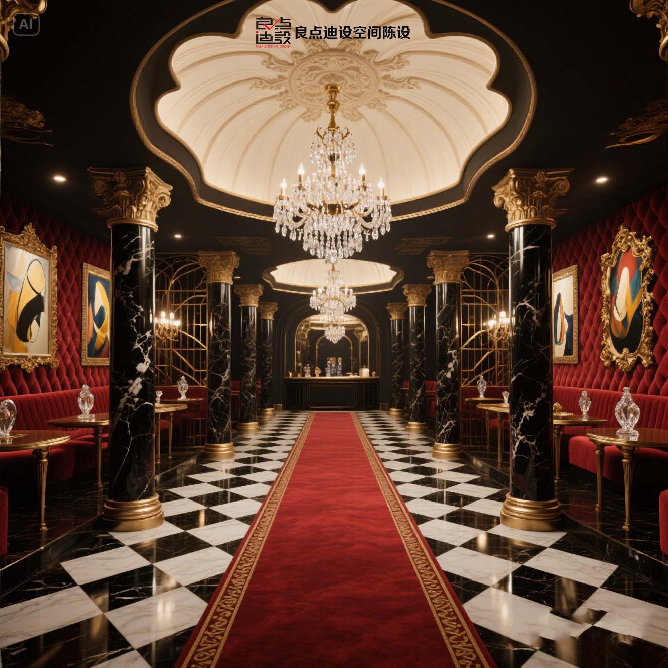 酒吧软装教科书!黑金穹顶+红丝绒沙发装修软装设计直接封神