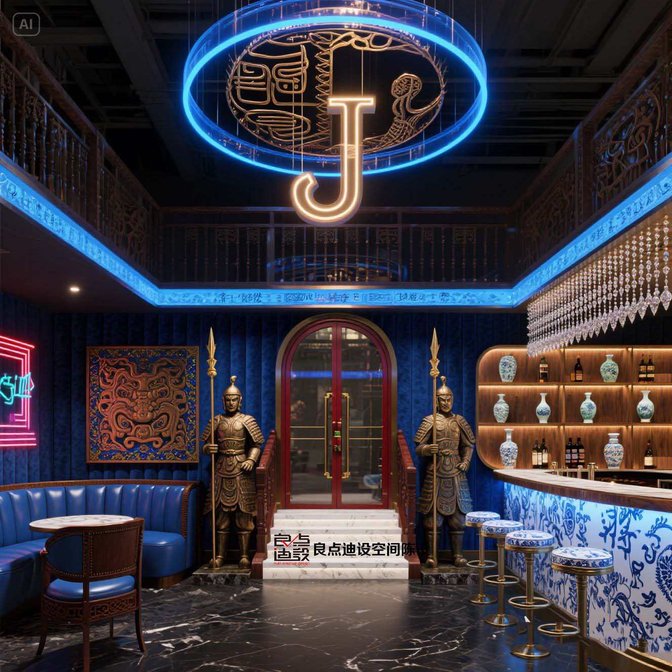 ??魔都新晋网红新东方主义酒吧装修软装设计出圈密码!赛博朋克兵马俑+青花瓷吧台太绝了!