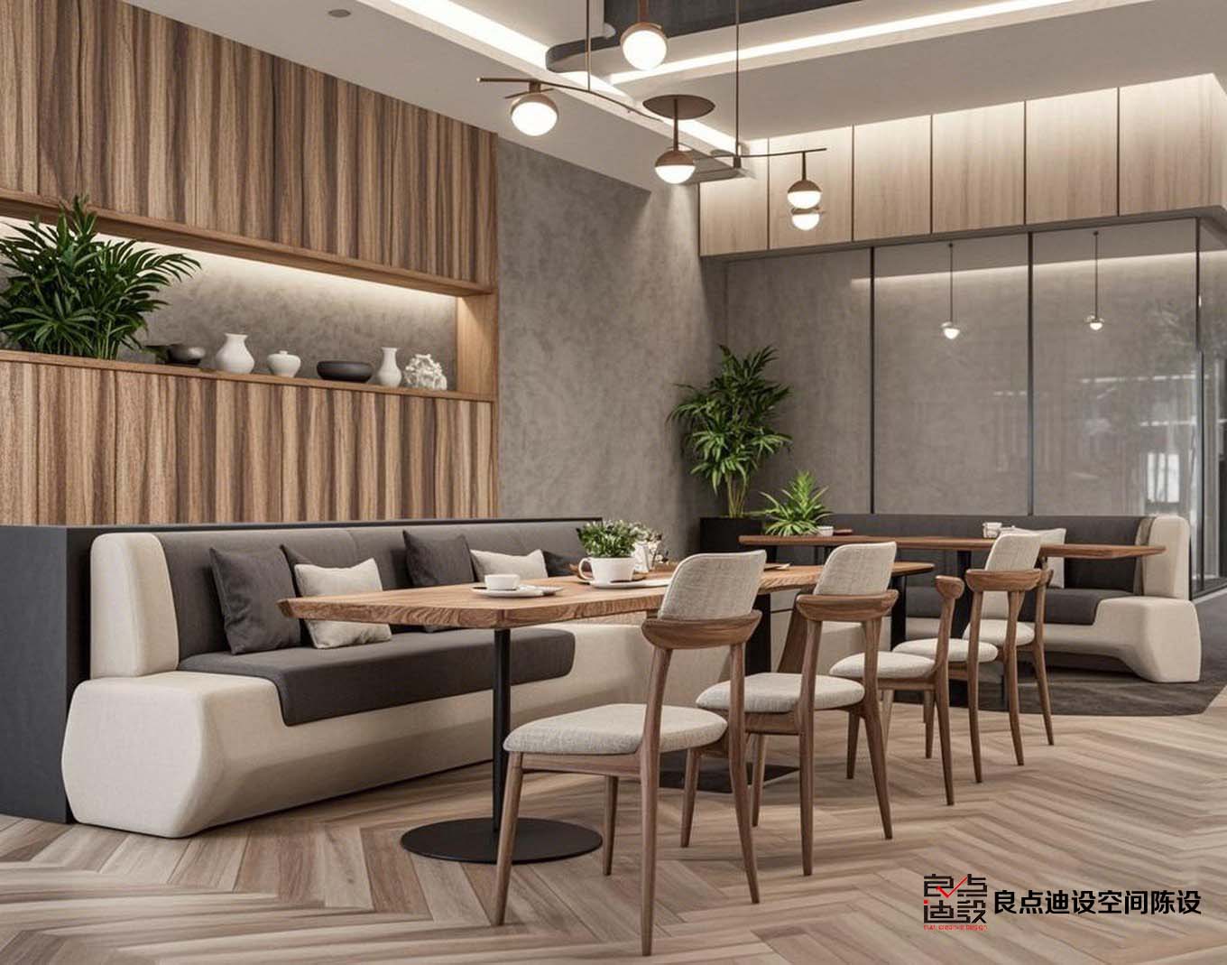别小看这组"性冷淡+小温暖"的混搭(放大镜emoji)。70%灰调墙面打底,30%橡木色家具点睛,冷峻工业风里藏着呼吸感。Tips:定制卡座时记得做旧处理,木纹结疤保留越多越有故事感。