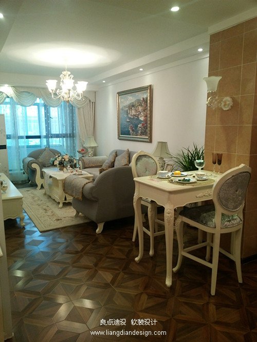 香城壹号公寓以地中海风格展现法式的情调,运用柔和的色调与自然达到了某种共契。室内软装设计基于海边轻松、舒适的生活体验,少有浮华、刻板的装饰,生活空间处处使人感到悠闲自得。玄关处墙面扩大做隔断,功能性不变。 配合统一风格的挂画与花艺,在顶灯配合下起到欢迎的作用??吞臀允抑浯蚩矫孀龈舳?,在视觉上让空间开阔,清爽的白色和海蓝色让小空间也明亮起来,小的配饰雅致富于情调,给人们带来轻松惬意和高雅品质的生活空间。