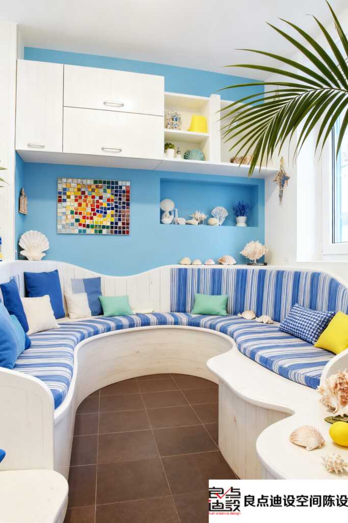 蓝色拱门也太吸睛了吧!和整体海洋风***融合,像是通往神秘海洋的入口,增加了空间的层次感。旁边的绿植盆栽,更是神来之笔——一抹绿色让整个角落活了起来,自然气息满满。软装设计里,绿植真是性价比***,既能净化空气,又能提升颜值,还不赶紧安排上?