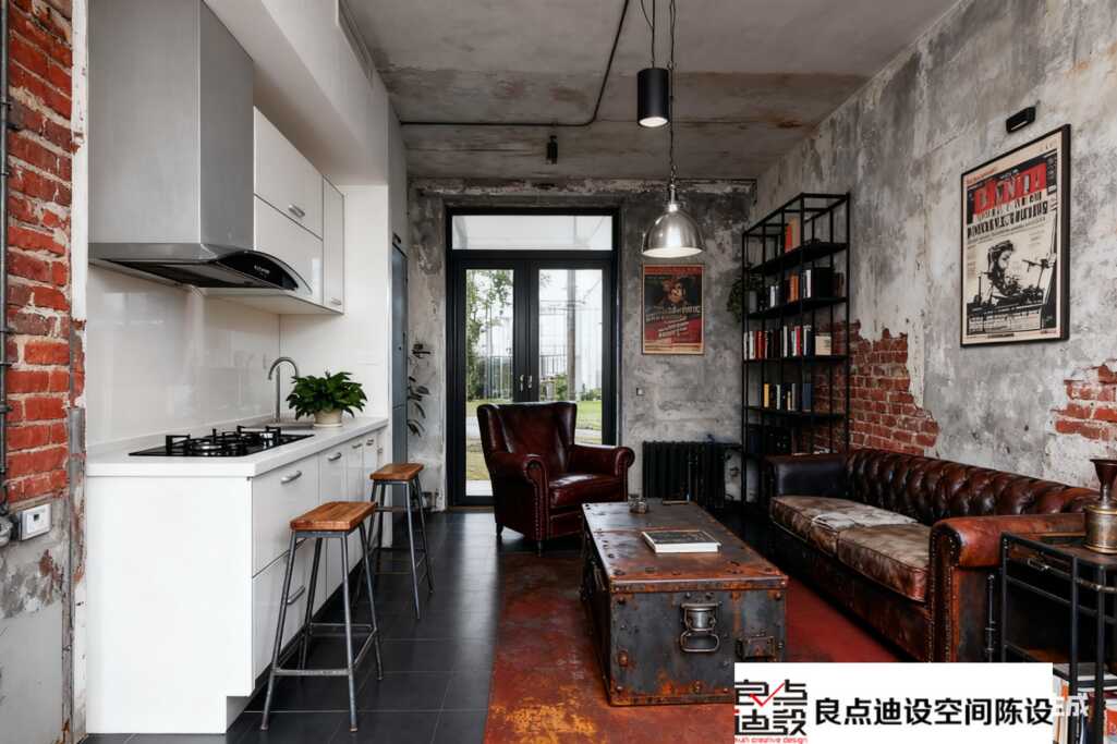 抬头看,那盏复古金属吊灯***是灵魂!打开暖黄色灯光,光线洒在水泥墙上,整个屋子立马笼罩在一种慵懒又高级的氛围里。墙面刻意保留的水泥原始质感,没做任何修饰,这种“未完成感”正是工业风的精髓,粗犷中带着时间沉淀的味道。