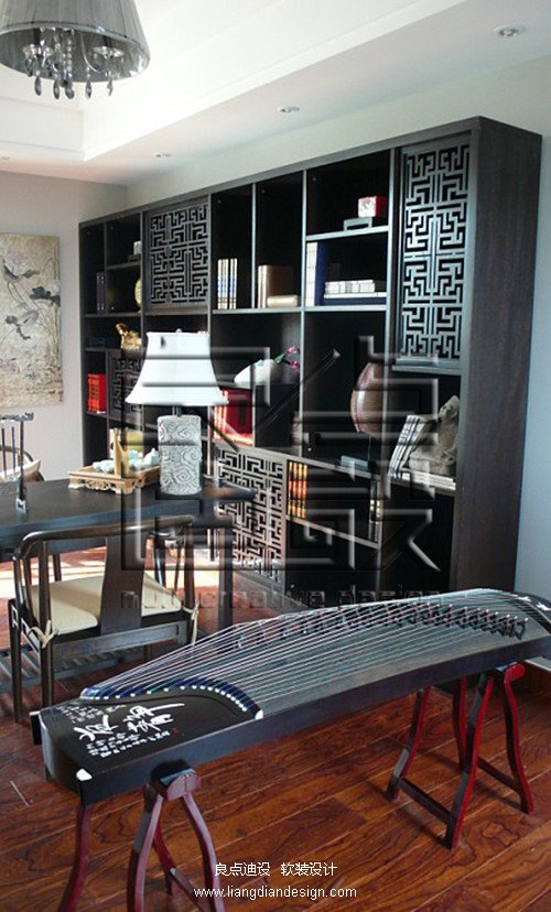 家具多以深色为主,黑、白、灰色为基调,加入皇家住宅的红、黄、蓝、绿等作为局部色彩。装饰材料采用瓷器、陶艺、字画等