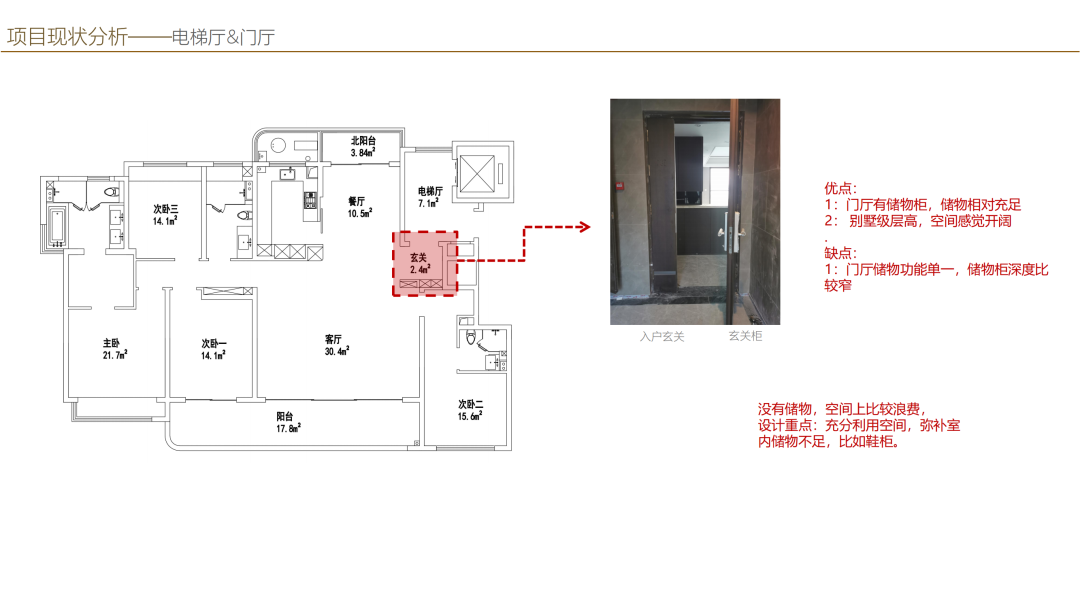 有收纳柜,但是深度较窄,后期是可以在玄关做一些补充性的收纳柜,比方说鞋或者是换季的鞋子、外套、包包、围巾之类的,我们通过内部的一些细化去做整体的布置。