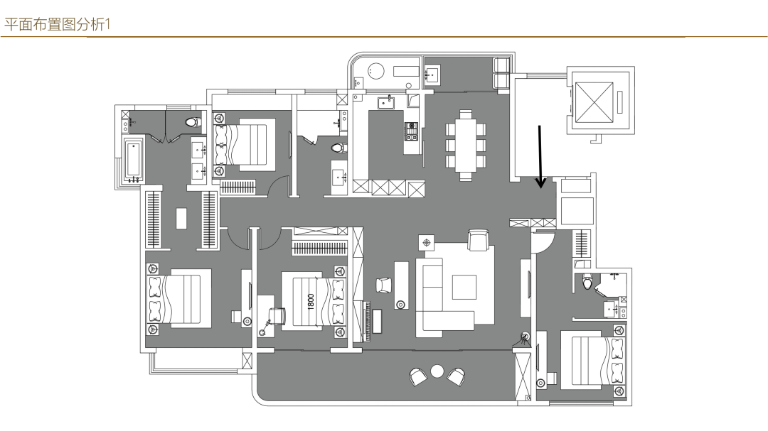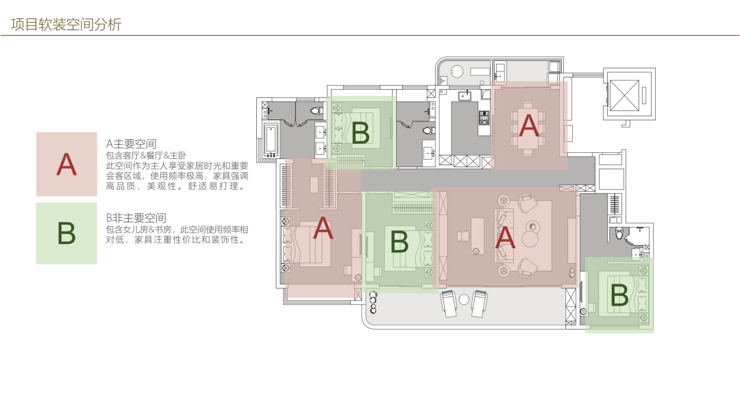 对于整体空间,一定要有主次之分(如上图),整个空间一定以客餐厅和主卧作为整体空间的 主要空间,使用频率相对更高,家具更强调品质和美观,同时具备舒适性,便于打理。
