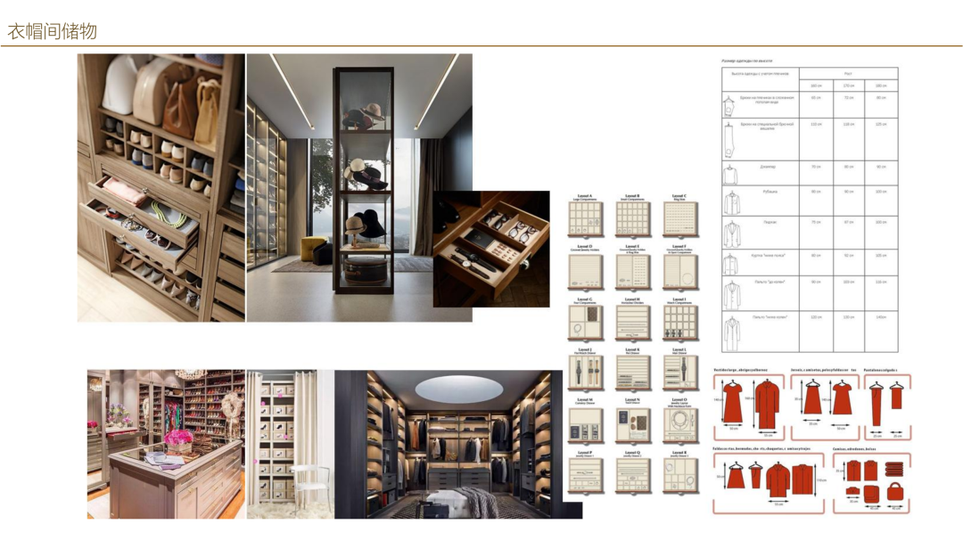 衣帽间 的衣帽收纳,首先应该结合业主的工作生活习惯,同时根据身高做个性化的定制设计,区分开长短衣物、包包、帽子、皮带等区域日常收纳的习惯。