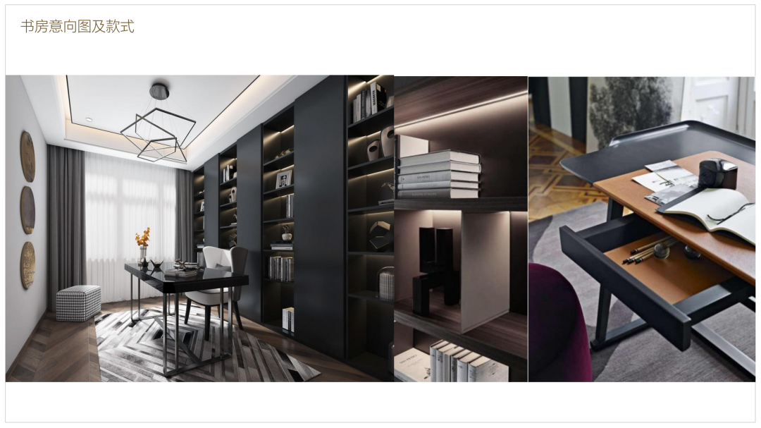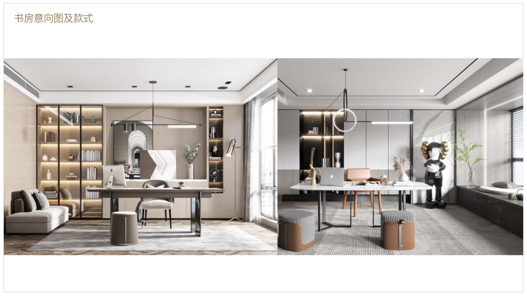 北面的小房间当作独立 书房使用,形式是多种多样的,不同的风格有不同的设计手法以及材质的运用都是跟风格息息相关的,需要注意的是顶面跟侧面,他跟墙体的一些收口的问题,材料肌理的选择,也应该跟灯具、窗帘这些软装方面的东西整体统一起来去考虑。