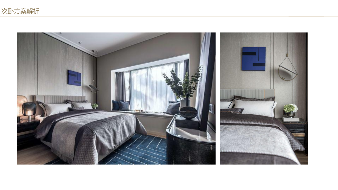 作为套房,将睡眠空间+衣帽收纳空间+洗漱空间为一体,床尾有需要的话,可以增加抽屉柜收纳跟梳妆台,两个南次卧独立的大衣柜能够满足客房的日常衣物收纳。北次卧